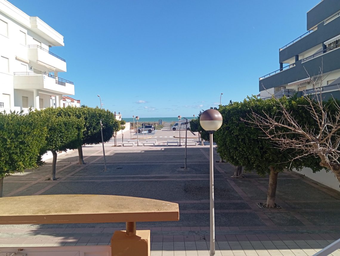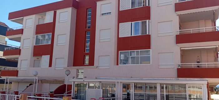 Edificio Marina d’Or V, 1º piso cerca de la playa y sin amueblar. Este piso se encuentra distribuido en: salón comedor, cocina con electrodomésticos, galería con lavadero, 2 dormitorios con armarios empotrados, 1 baño; terraza con toldos y buenas vistas, con ventanas de aluminio, persianas de madera, el piso tiene 55 metros cuadrados (+) más 11 de elementos comunes, con piscina, ascensor y con orientación sur que proporciona luz natural y corrientes de aire en todo el habitáculo.